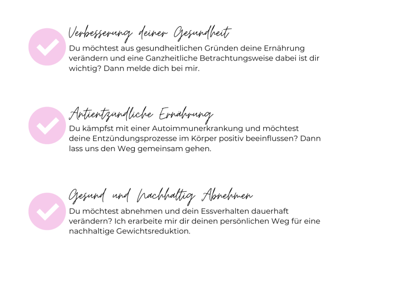 Du möchtest dauerhaft auf eine gesunde vegane Ernährung umstellen oder die vegane Ernährung einfach einmal für einige Zeit ausprobieren? Du hast Entzündungsprozesse im Körper und möchtest diese mit deiner Ernährung eindämmen? Du möchtest gesund und nachhaltig abnehmen und dein Wissen über Ernährung erweitern?